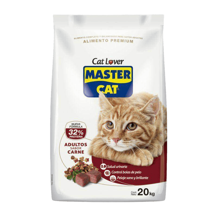 Master Cat sabor carne, contiene fibras naturales que promueven una digestión sana y estimulan el desplazamiento de las bolas de pelo a través del sistema digestivo, previniendo el estreñimiento en tu gato. Además contiene Omega 3 que permite mantener una piel sana y un pelaje brillante.